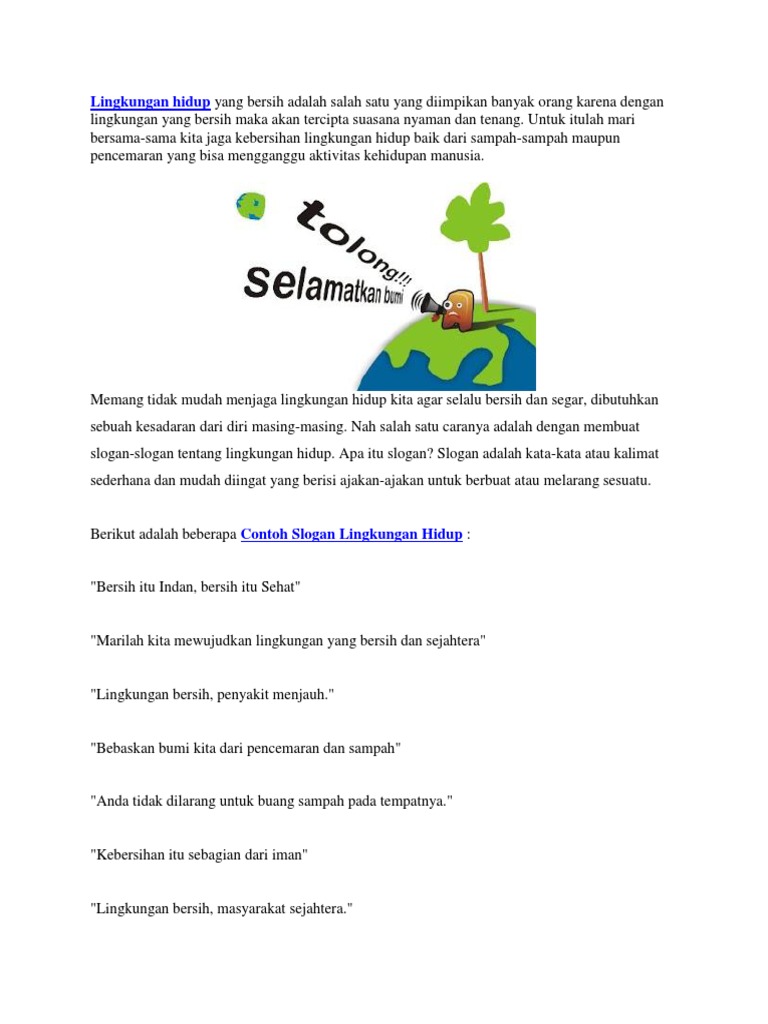 Kebersihan merupakan salah satu perintah dalam agama islam. Padahal tujuannya adalah mengajak seseorang untuk melakukan jagalah kebersihan sebagaimana kamu menjaga diriku! Hari ini menanam pohon, hari esok menikmatinya. Tujuan dari slogan lingkungan ini yaitu mengajak masyarakat agar menjaga serta mencintai lingkungan sekitarnya. Kebersihan adalah sebagian dari iman islam mengajarkan kepada umatnya untuk selalu menjaga kebersihan, baik kebersihan lahir maupun kebersihan batin, kebersihan jasmani maupun kebersihan rohani. Kumpulan slogan kebersihan dan menjaga kebersihan sekolah bagi para siswa. Kebersihan itu sebagian dari iman. Slogan mempunyai karakteristik tertentu sehingga dapat dibedakan dengan jenis seperti yang disebutkan sebelumnya, tujuan utama dari suatu slogan adalah untuk mengajak orang lain kebersihan adalah sebagian dari iman. Beliau telah meletakan pedoman dasar. Kebersihan adalah sebagian dari iman. Jika tak mau alam murka, maka buanglah sampah pada tempatnya. Belajarkan hidup sehat kapanpun dan dimanapun! Ada berbagai hal yang bisa digunakan.